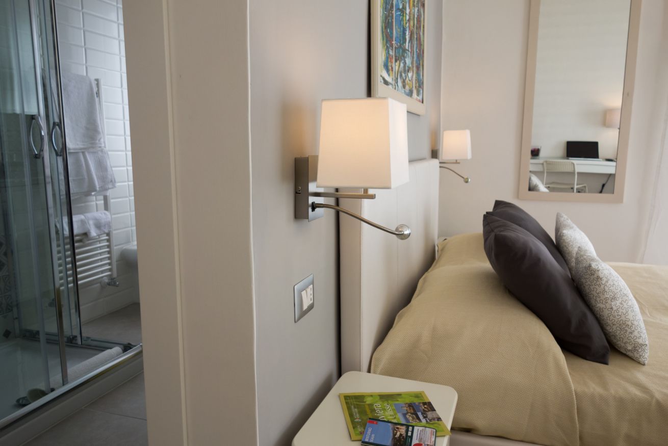 Camera Matrimoniale con Ampio doppio Balcone ideale per famiglie. Soluzione confortevole , ampia e moderna con un Letto Matrimoniale Queen size + Letto Singolo ed eventuale quarto letto aggiunto a richiesta. Raggiungibile facilmente tramite scale interne alla struttura. La camera è dotata di tutti i servizi , bagno privato con box doccia in cristallo , TV a schermo piatto , ampio Balcone , Aria Condizionata , Pulizie Giornaliere , Mini Frigo , WiFi Free , Colazione inclusa e Parcheggio Auto Gratuito in loco. Ideale alloggio per 3 persone.
