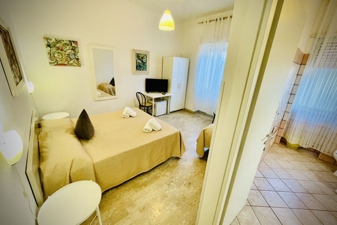 Sistemazione comoda per un soggiorno pratico e funzionale : Stanza con Letto Matrimoniale e Letto Singolo aggiunto su richiesta , situato al piano rialzato della struttura di facile accesso con bagno privato dotato di box doccia in cristallo , Aria Condizionata Autonoma , Mini Frigorifero , TV , WiFi , Colazione e Parcheggio Auto in struttura Gratuito. Ideale per il soggiorno di due persone.